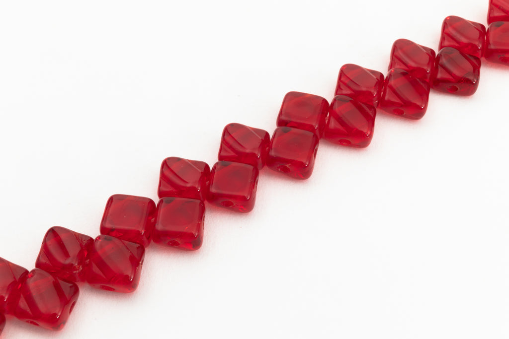 Silky beads 6mm square shape beads with 2 diagonally drilled parallel holes.