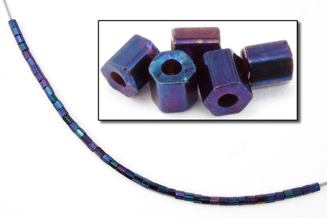 High quality glass bead. 2mm size 1/2 metallic blue iris hex bugle.