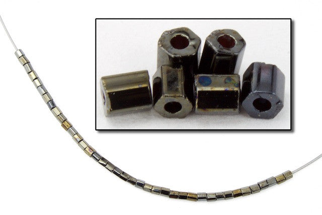 High quality glass bead. 2mm size 1/2 metallic khaki iris hex bugle.