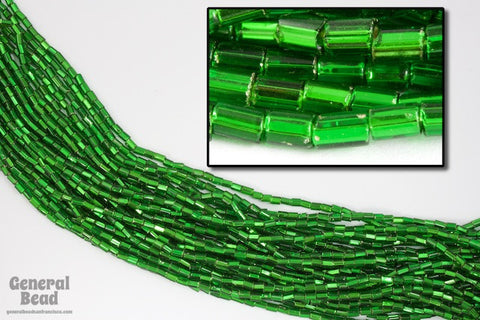 Glass bead- 1/8 inch or 3mm size 1 silver lined green bugle.