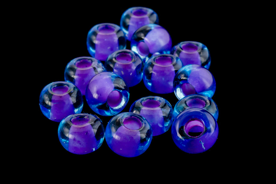 Size 10 purple lined aqua seed beads.