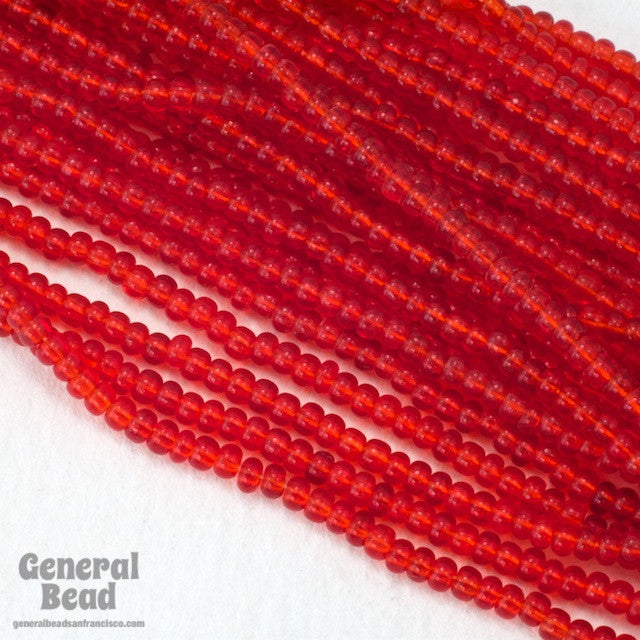 Size 10 transparent ruby seed bead.