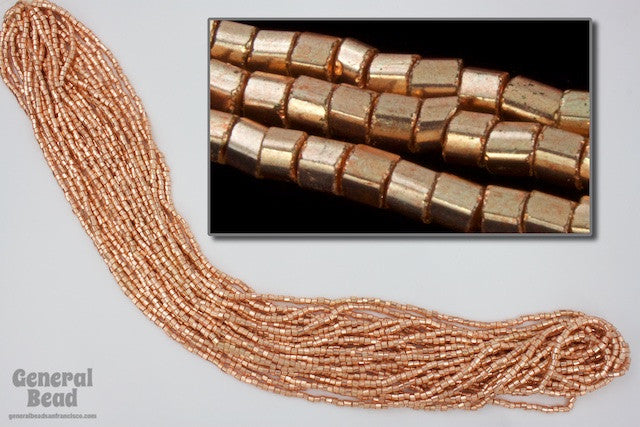 Size 11 faceted hex cut six sided seed bead in metallic light gold.