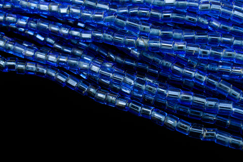 Size 11 faceted hex cut six sided seed bead in silver lined light sapphire.