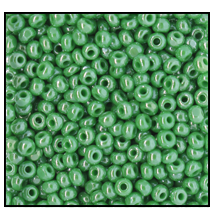 Size 11/0 Charlotte cut luster pea green glass seed beads.