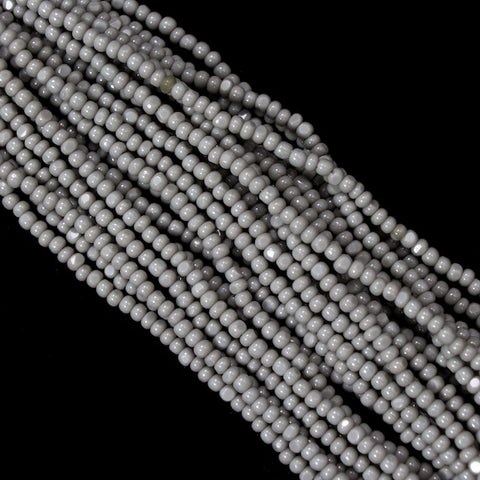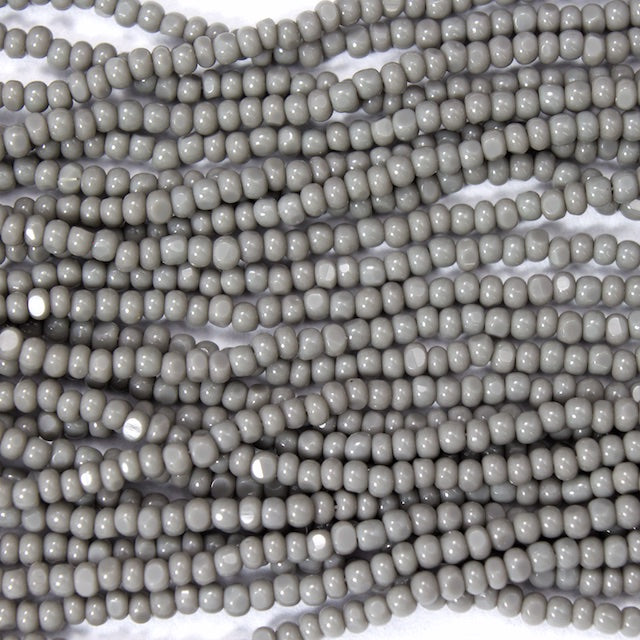 Size 11/0 Charlotte cut opaque gray glass seed beads.