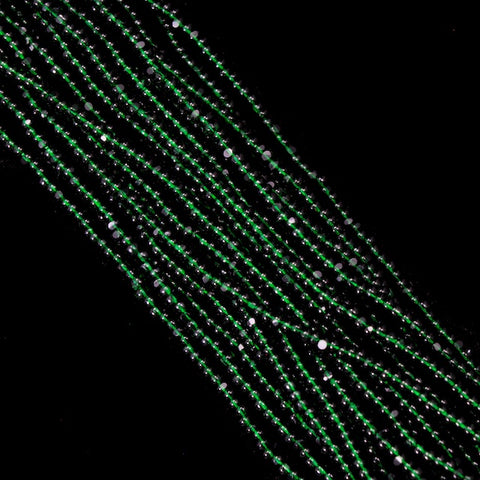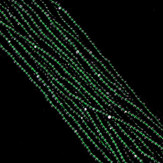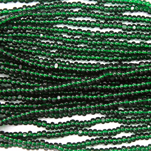 Size 11/0 Charlotte cut transparent evergreen glass seed beads.