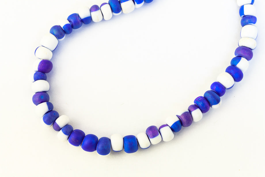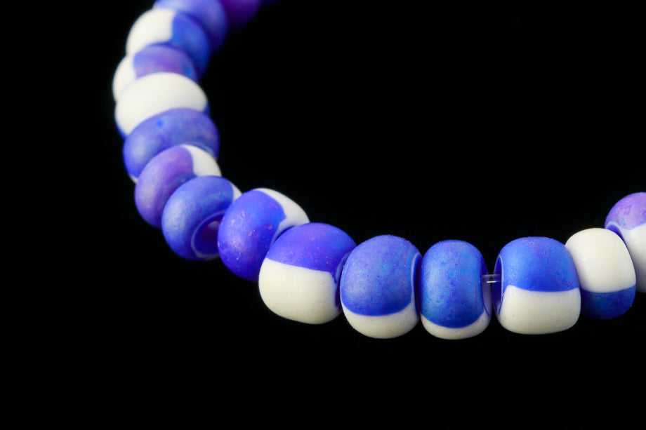 Size 11 matte opaque seed bead with one half blue and the other half white.