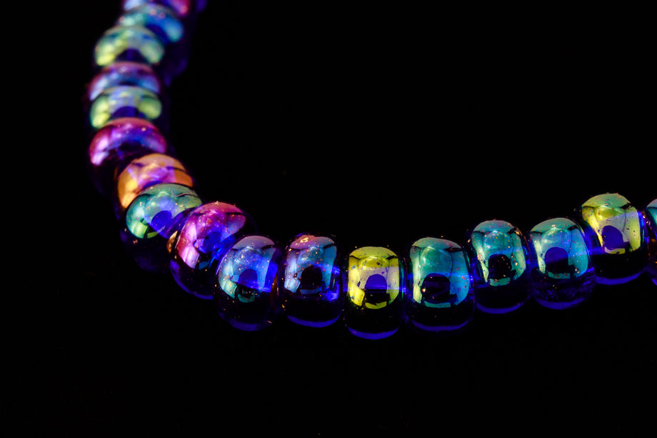 Size 11 silver lined cobalt iris seed bead.