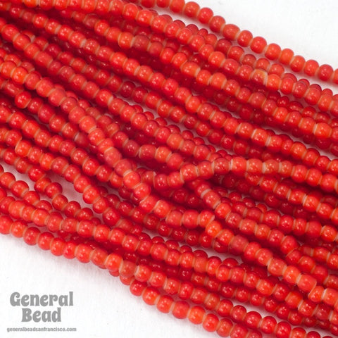 Size 11 opaque red seed bead with white heart.