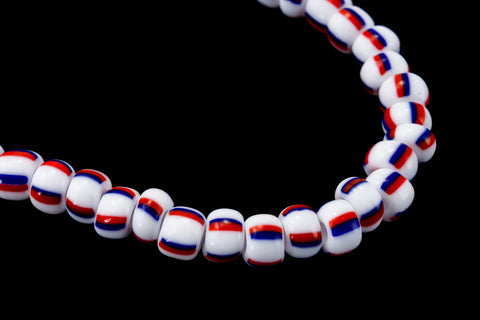 11/0 Stripe Red and Blue on White Czech Seed Bead (1/2 Kilo) #BL507