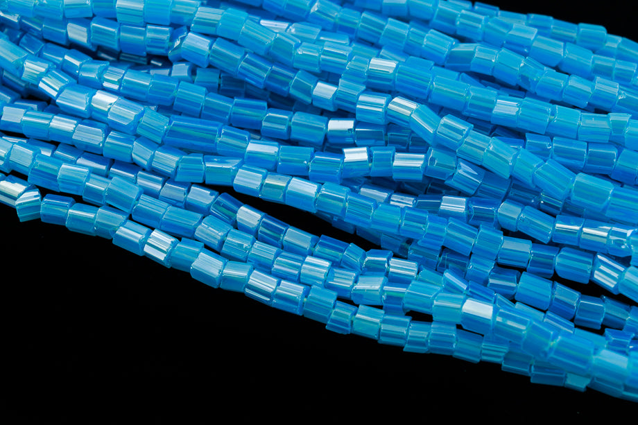 Size 11 faceted hex cut six sided seed bead in satin aqua.