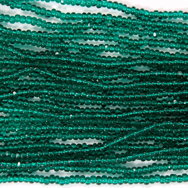 Size 11/0 Charlotte cut transparent blue zircon glass seed beads.