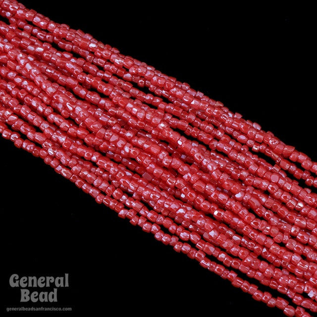 Size 12/0 (1.7mm) 3-cut glass seed bead in luster opaque Chinese red.