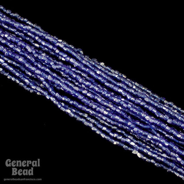 Size 12/0 (1.7mm) 3-cut glass seed bead in luster transparent sapphire.
