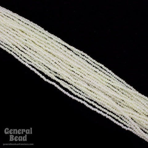 Size 12/0 opaque ceylon yellow glass seed beads.