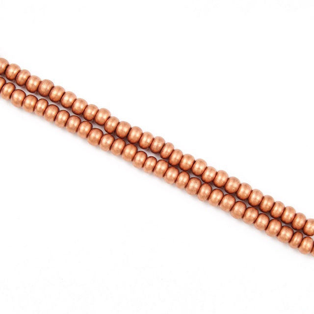 Size 13/0 (1.7mm) glass seed beads in matte metallic light copper.