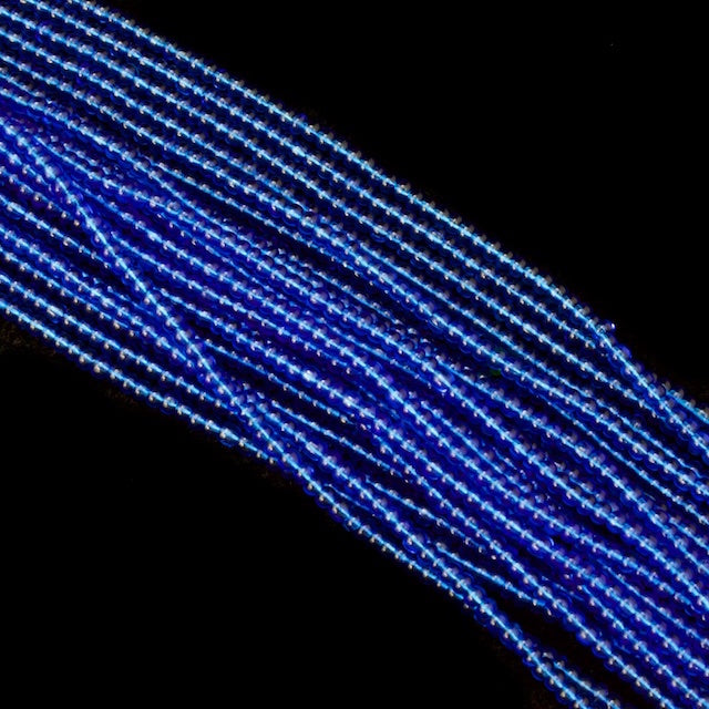 Size 13/0 (1.7mm) glass seed beads in transparent Capri blue.