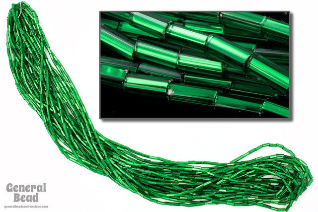 Glass bead- 4mm size 2 silver lined green bugle.