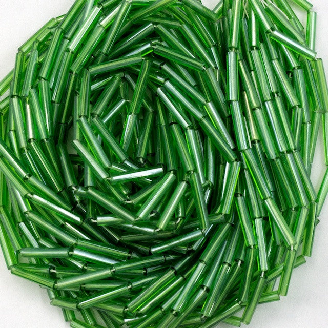 Glass bead- 7/16 inch or 11mm size 5 luster transparent lime bugle.