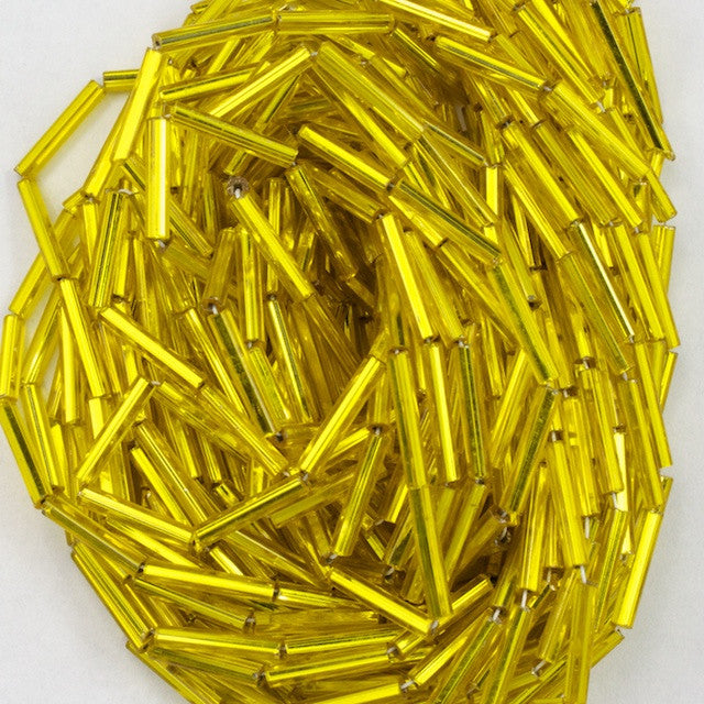Glass bead- 7/16 inch or 11mm size 5 silver lined yellow bugle.