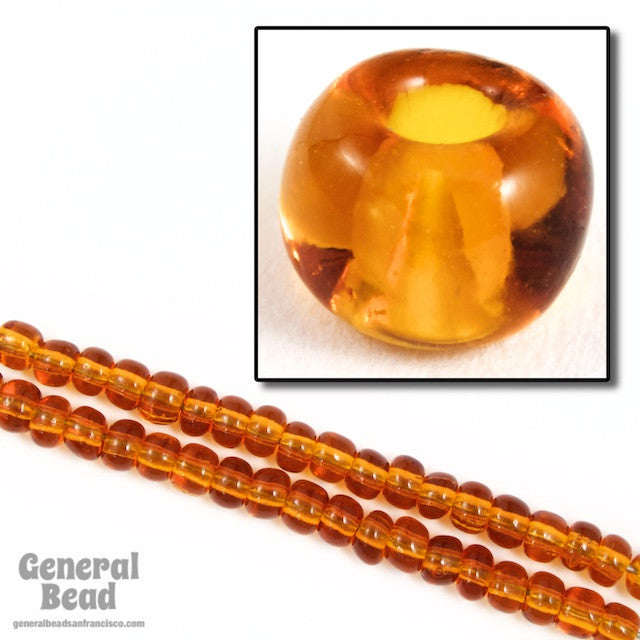 Size 5/0 transparent dark goldenrod seed bead.