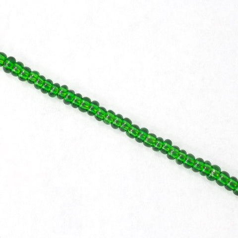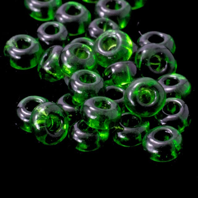 Size 5/0 transparent emerald seed bead. Approximately 4mm.