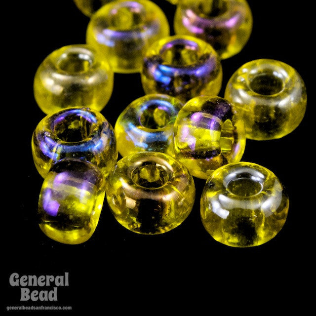 Size 6 transparent yellow iris seed beads.