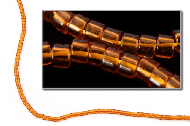 Transparent dark amber.10, 50 or 250 grams per package.Excellent for bead stitching and loom work.