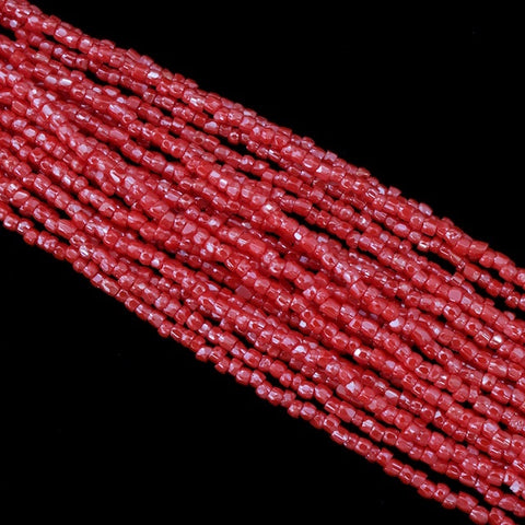 Size 9/0 (2.6mm) 3-cut glass seed bead in luster opaque Chinese red.