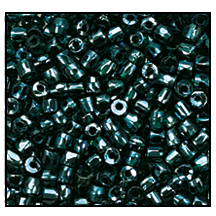 Size 9/0 (2.6mm) 3-cut glass seed bead in luster transparent dark green.