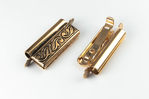 10mm x 29mm slide lock clasp with curving leaf detail.