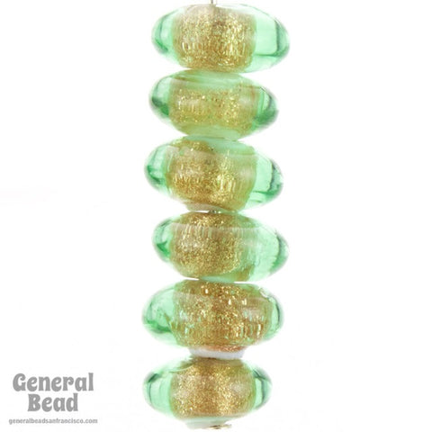 4mm x 8mm peridot and gold glass rondelle with white heart.