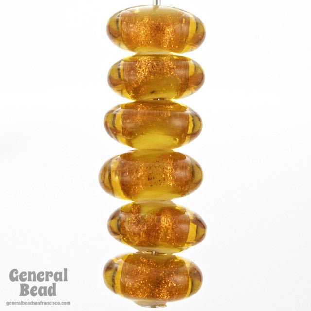 4mm x 8mm topaz and gold glass rondelle with white heart.
