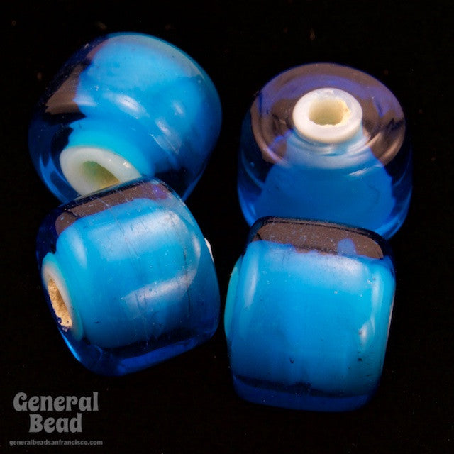 5mm x 8mm Capri blue glass white heart bead with 1mm-2mm hole.