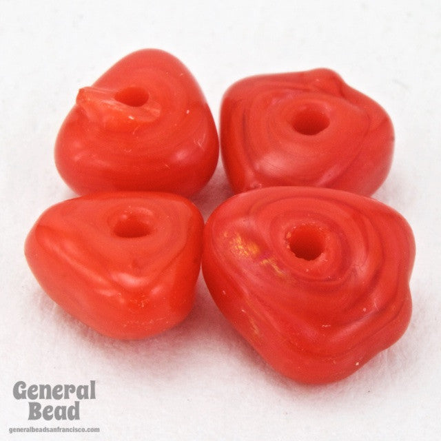 8mm opaque coral red glass triangle rondelle "chip" style bead with center hole, slightly irregular.