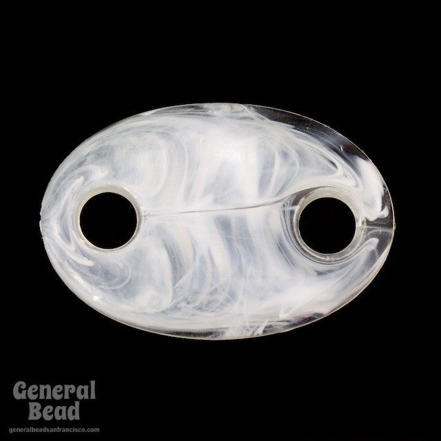 25mm x 40mm marbled white and clear oval with 6mm hole at either end.