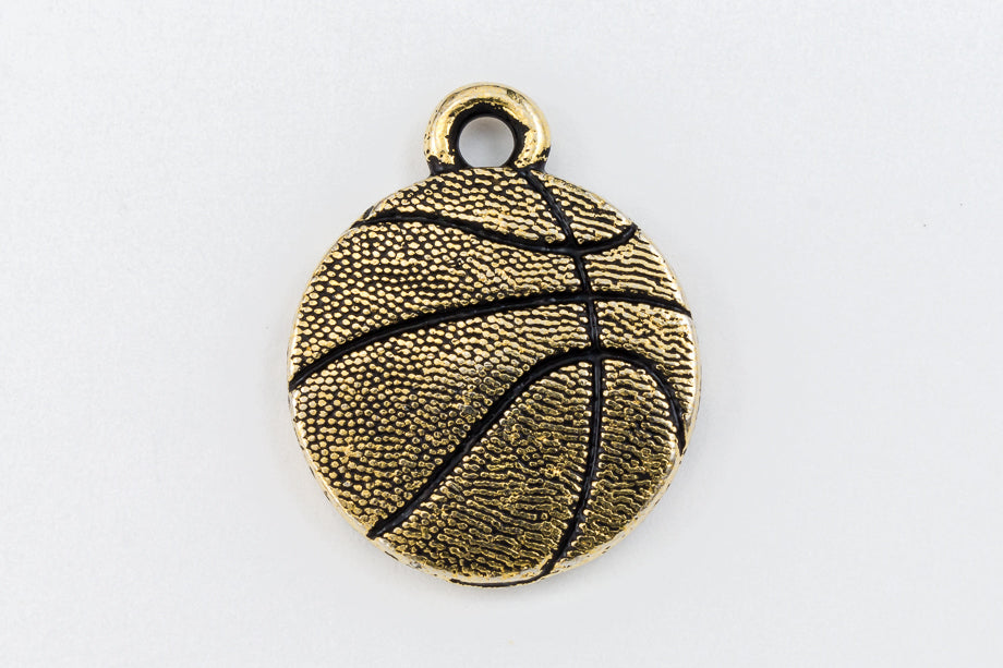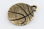 15.8mm x 19mm antique gold basketball charm. Inner diameter of loop is 2.2mm.