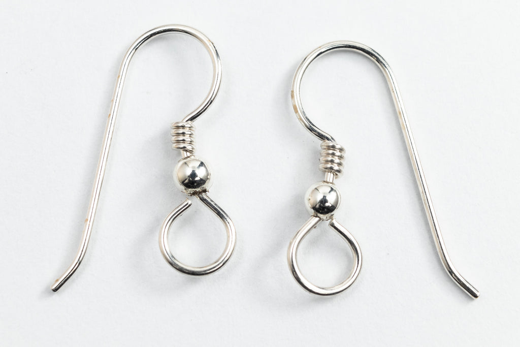 8.3mm x 22.5mm French Hook style with 3mm Sterling bead and coil. Inner diameter of loop measures 2.2mm.