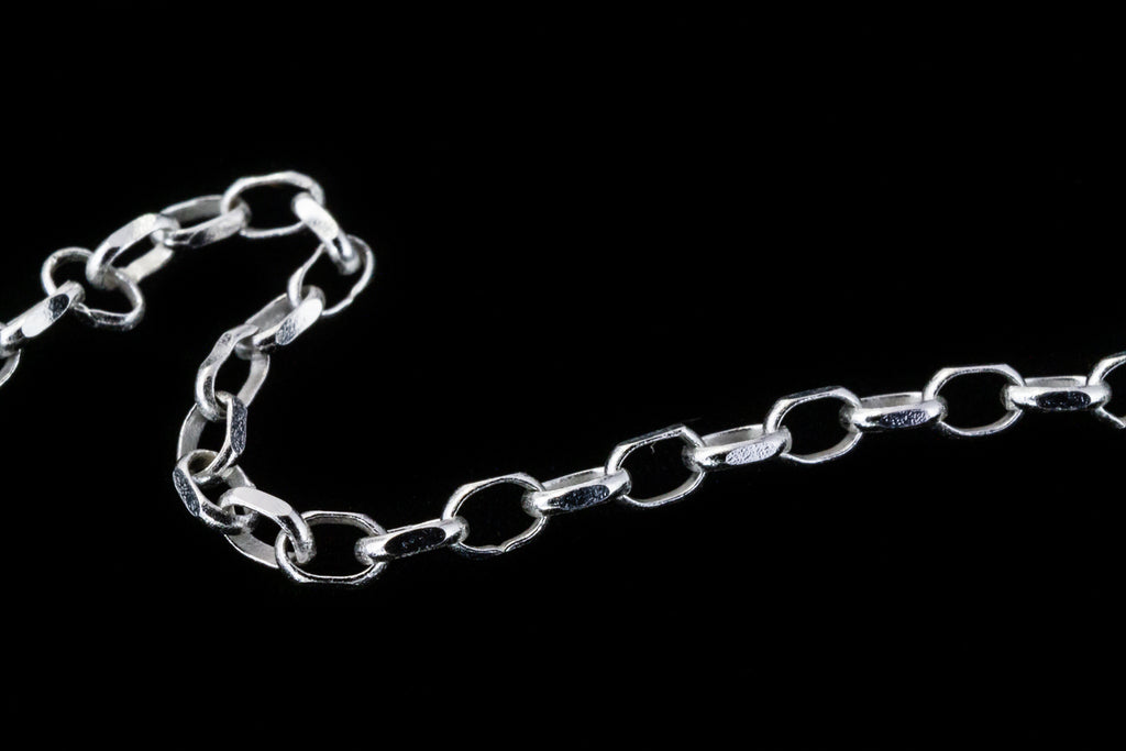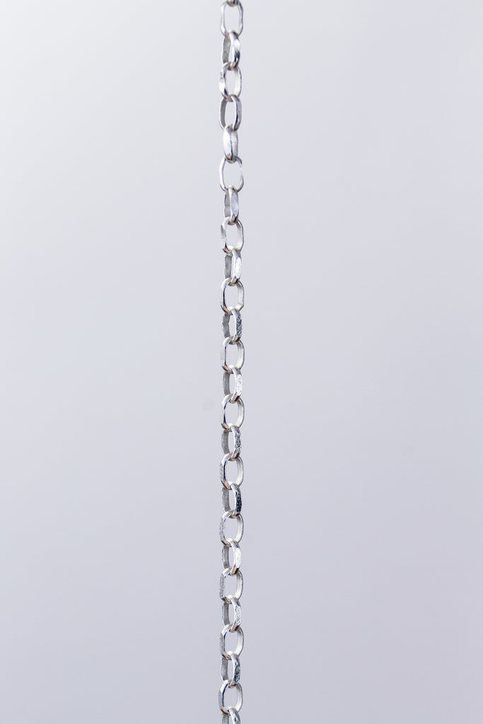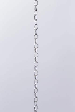 3mm x 2mm oval rolo chain with diamond cut manufacture that gives a sharp sparkling effect.