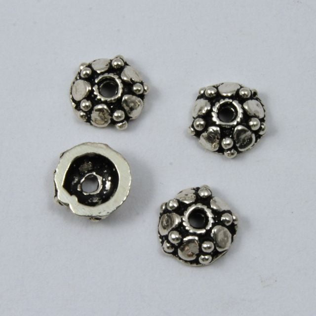 4mm Turkish sterling silver (.925) bead cap with traditional beaded design.