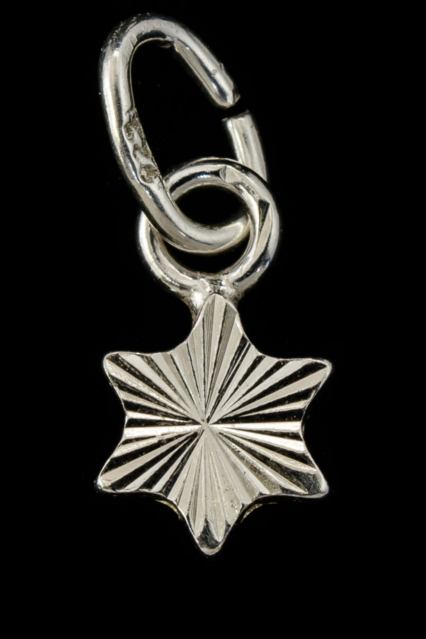 9mm Sterling Silver Diamond Cut Six Point Star Charm #BSJ043