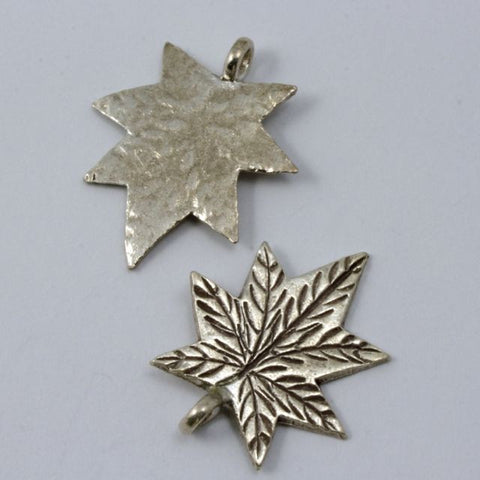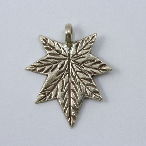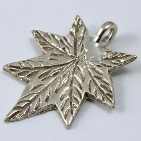 Thai Sterling Silver 0.925.21mm x 25mm maple leaf charm with vein detail and perpendicular loop. Sold individually.