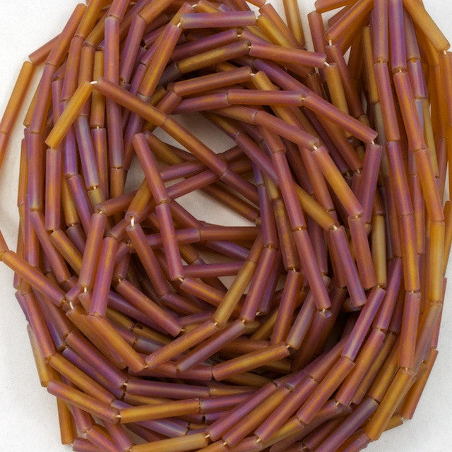 Glass bead- 7/16 inch or 11mm size 5 matte iridescent smoked topaz bugle.