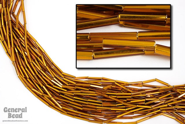 Glass bead- 7/16 inch or 11mm size 5 silver lined goldenrod bugle.