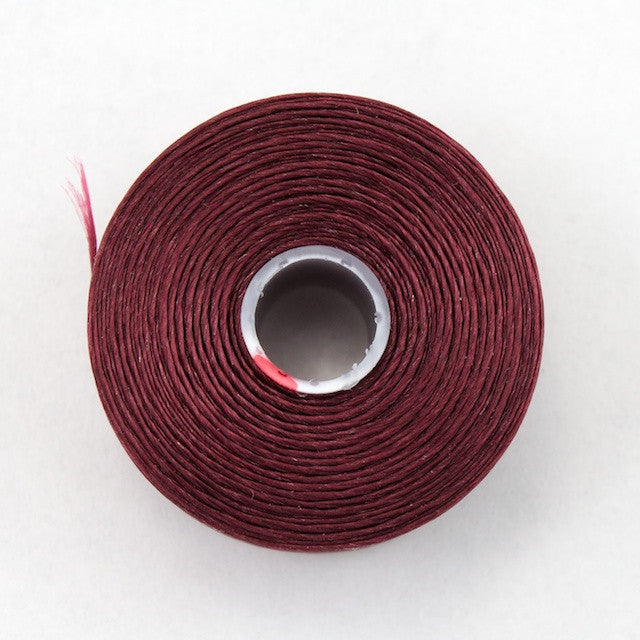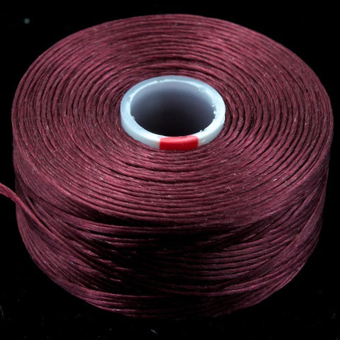 Deep burgundy. Size D, fits through #12 needles.