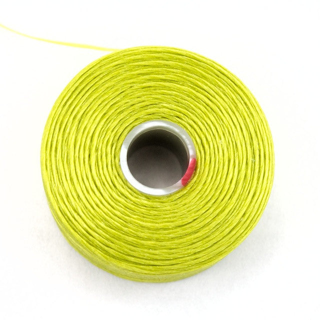 Chartreuse green. Size D, fits through #12 needles.