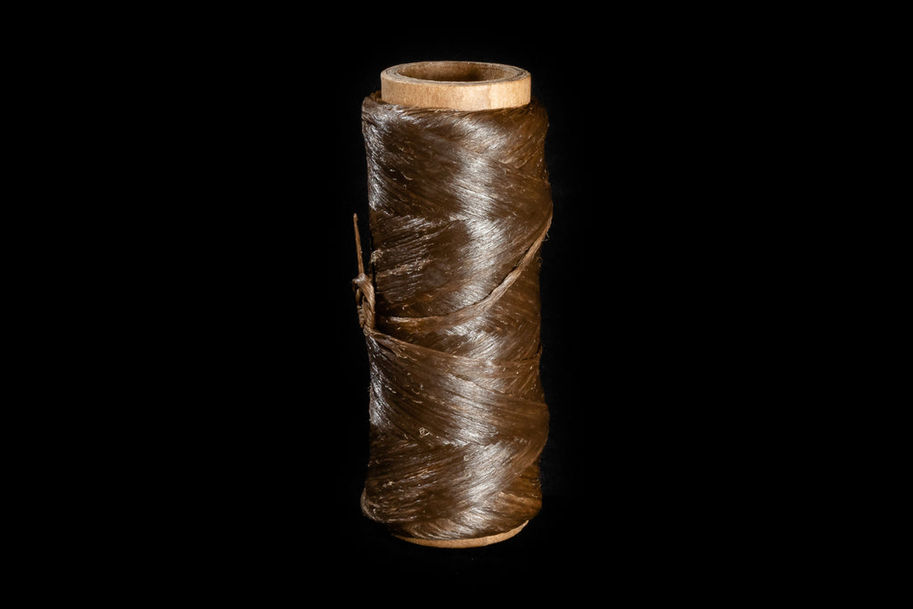 Dark brown artificial sinew made from waxed polyester.
