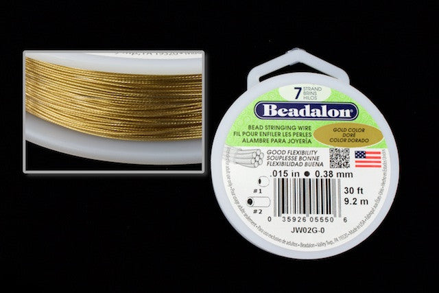 Clear nylon coating over 7 strands of gold tone wire. 0.015 inch/ 0.38mm diameter.