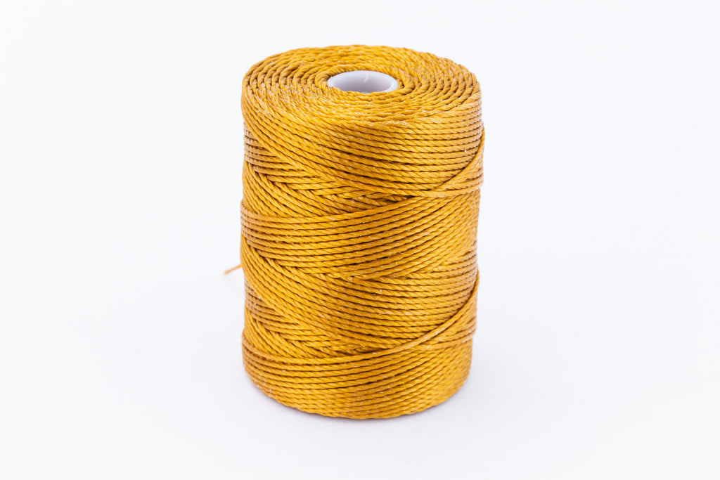 Gold bonded nylon micro beading cord for a variety of projects including bead crochet, kumihimo braiding and micro-macrame.